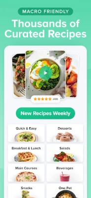 • Nutrition details: Total & net carbs, fat, calories, protein tracker, fiber tracker, glycemic load, & more
