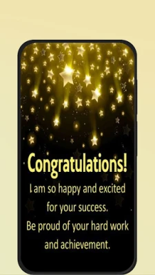 We have gathered in the congratulations wishes Application a bouquet of congratulations on your engagement ,and, congratulations message for graduation ;and; graduation card messages ,as well as congratulations on promotion ; and; congratulations for engagement ,and, promotion wishes ,as well as congratulations wishes for result and, new job wishes and congratulations for new job.