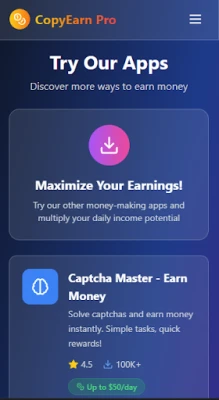 Just open the app, choose from available tasks, copy and paste content as instructed, and earn coins or points. Once you reach the minimum payout threshold, you can redeem your rewards for real cash via popular payment methods like UPI, PayPal, or wallet options.