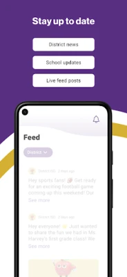 DISTRICT UPDATES In the Live Feed is where you'll find updates from the administration about what's going on in the district right now. Whether that's celebrating a student's success, or reminding you about an upcoming deadline.