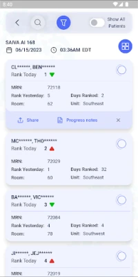- Quickly identify new patients who are now at risk and get updated on patients who have increased in risk from the previous day.
