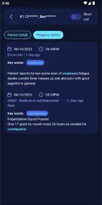 - Gather meaningful insights, including notes with highlighted keywords that are excerpts directly from nurse notes entered into EHR.