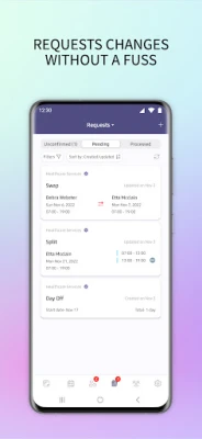 Request changes to your shifts, such as swapping with colleagues or taking days off. Check the status of submitted requests along with comments from the management.