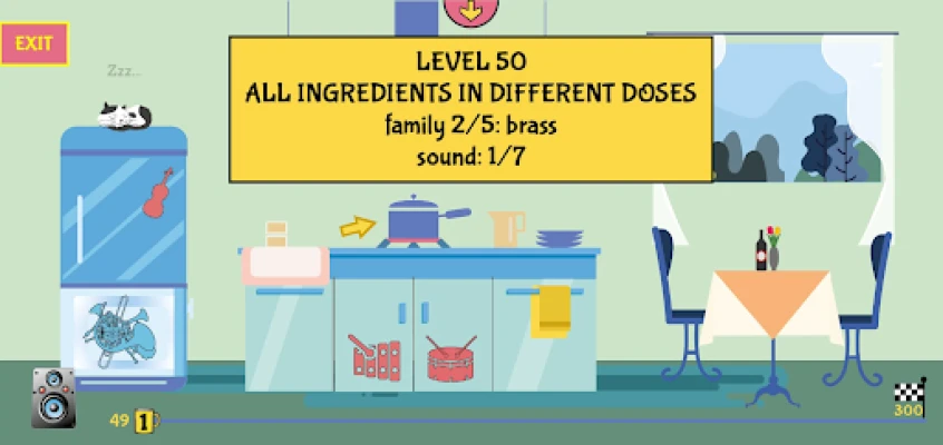 Listen how they combine in short orchestral excerpts: every time you play a level afresh, they are shuffled and recombined in new orchestral music. Play all the 300 levels, collect badges and make the cat and the chicken happy at the end of the game.