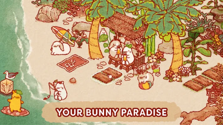 Craft a bunny retreat like no other by building cute shops and crafting beautiful landscape features. Design an enchanting escape that adds to the charm of your bunny-filled island.